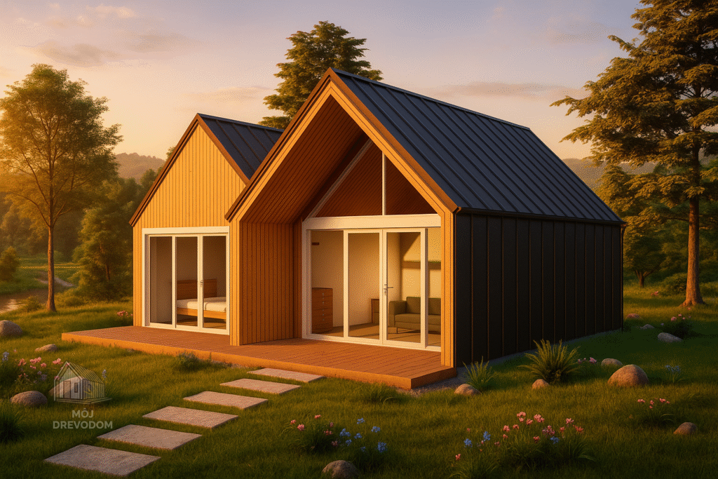- Kompaktné 2-podlažné riešenie vhodné pre rodiny 3–4 osôb