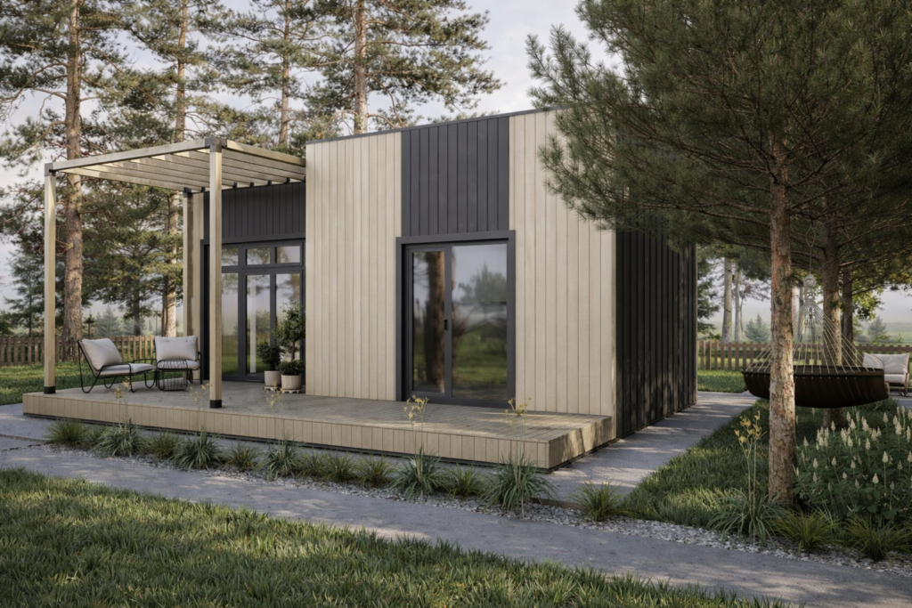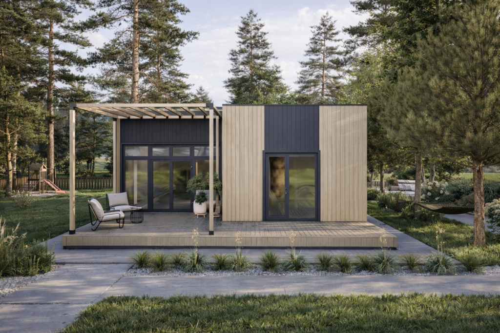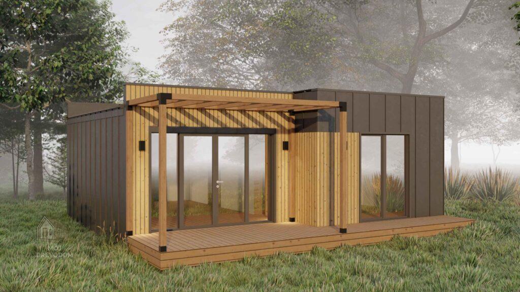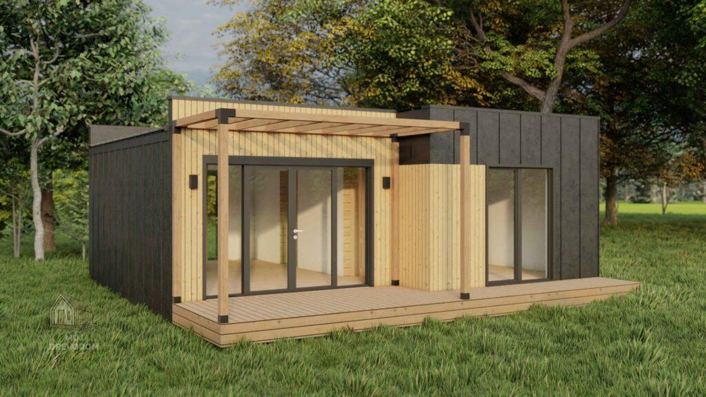 Flat House s výškou stropu 2,7 m je navrhnutý ako praktické a cenovo dostupné riešenie moderného bývania. Vďaka jednoduchej montáži a čistému architektonickému štýlu je tento plochý montovaný dom ideálnou voľbou pre záhrady, rekreačné pozemky aj ako vedľajší objekt k hlavnému domu. S rozumnou úžitkovou plochou poskytuje dostatok komfortu bez zbytočnej veľkosti. Je ideálny ako víkendový domček, ateliér, záhradná kancelária alebo štartovací dom pre jednotlivcov a páry. Plochá strecha s miernym sklonom pôsobí elegantne a umožňuje osadenie aj v lokalitách s obmedzenou výškou stavieb.