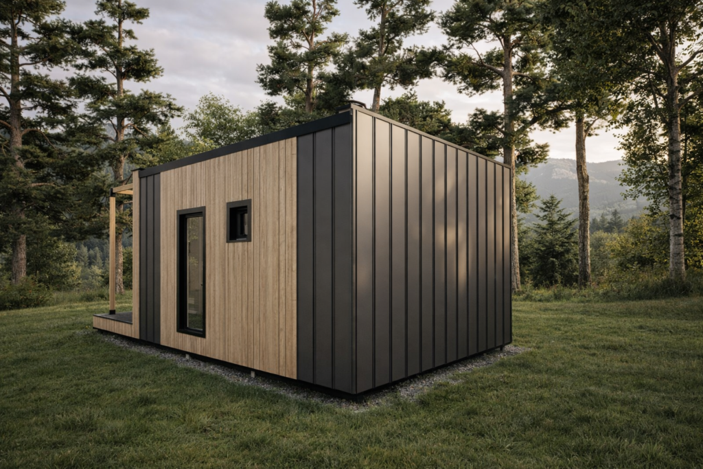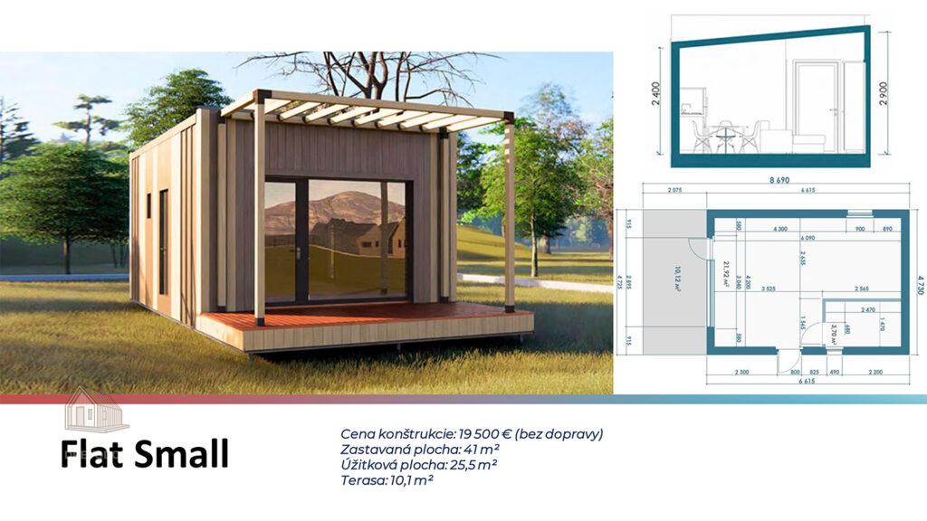 Flat Small je ideálnou voľbou pre všetkých, ktorí hľadajú štýlové, funkčné a cenovo dostupné bývanie. Tento model predstavuje kompaktný montovaný dom s plochou strechou, ktorý spája moderný dizajn s rýchlou a jednoduchou výstavbou. Vďaka svojej rozumnej veľkosti, praktickému riešeniu a minimalistickej architektúre je vhodný ako štartovací dom pre mladých, víkendová chata, samostatný apartmán, dom pre seniorov alebo záhradný ateliér.