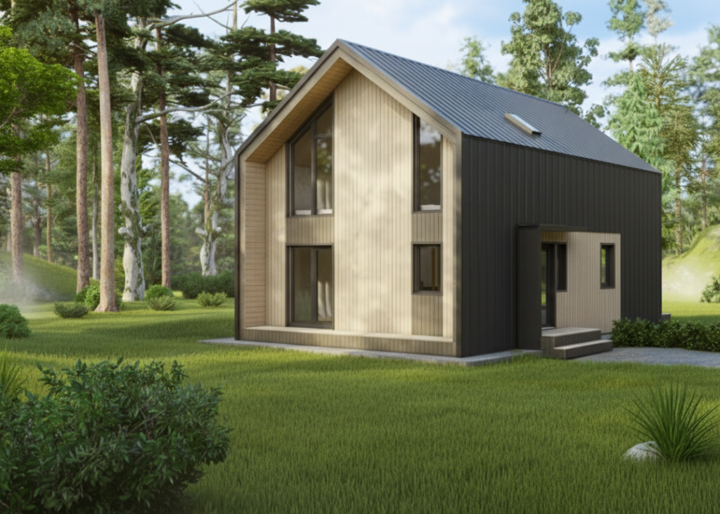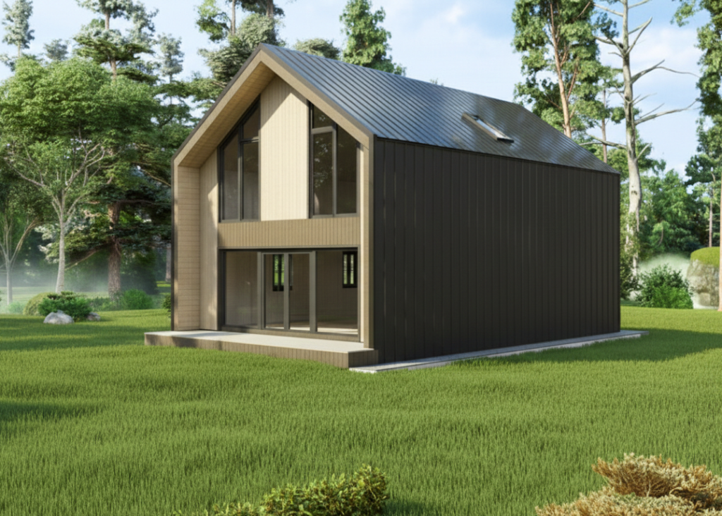 Projekt NORWAY spája škandinávsky minimalizmus, funkčnosť a otvorený, svetlý priestor. Tento drevodom sa vyznačuje čistými geometrickými líniami, veľkoformátovými panoramatickými oknami a otvorenou terasou, ktorá prirodzene prepája interiér s okolím a zdôrazňuje blízkosť k prírode.